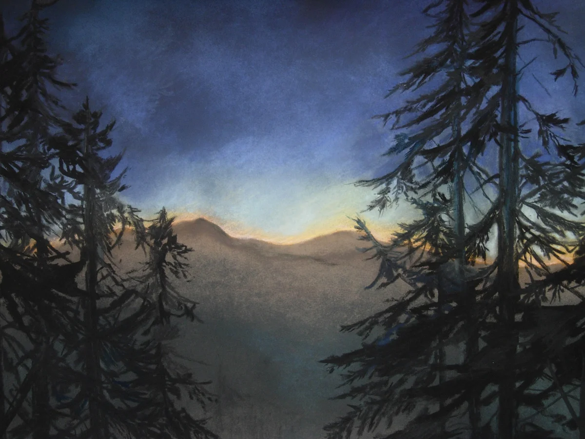 This is the early morning view from my window, on a clear day, through the fir trees.