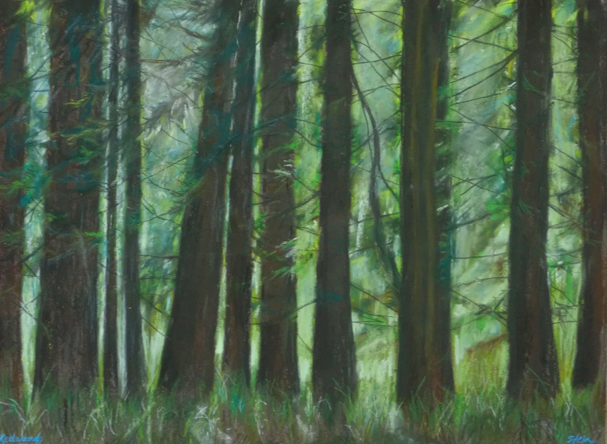 Redwoods - summer light falls into the deep shadows of the redwood trees.